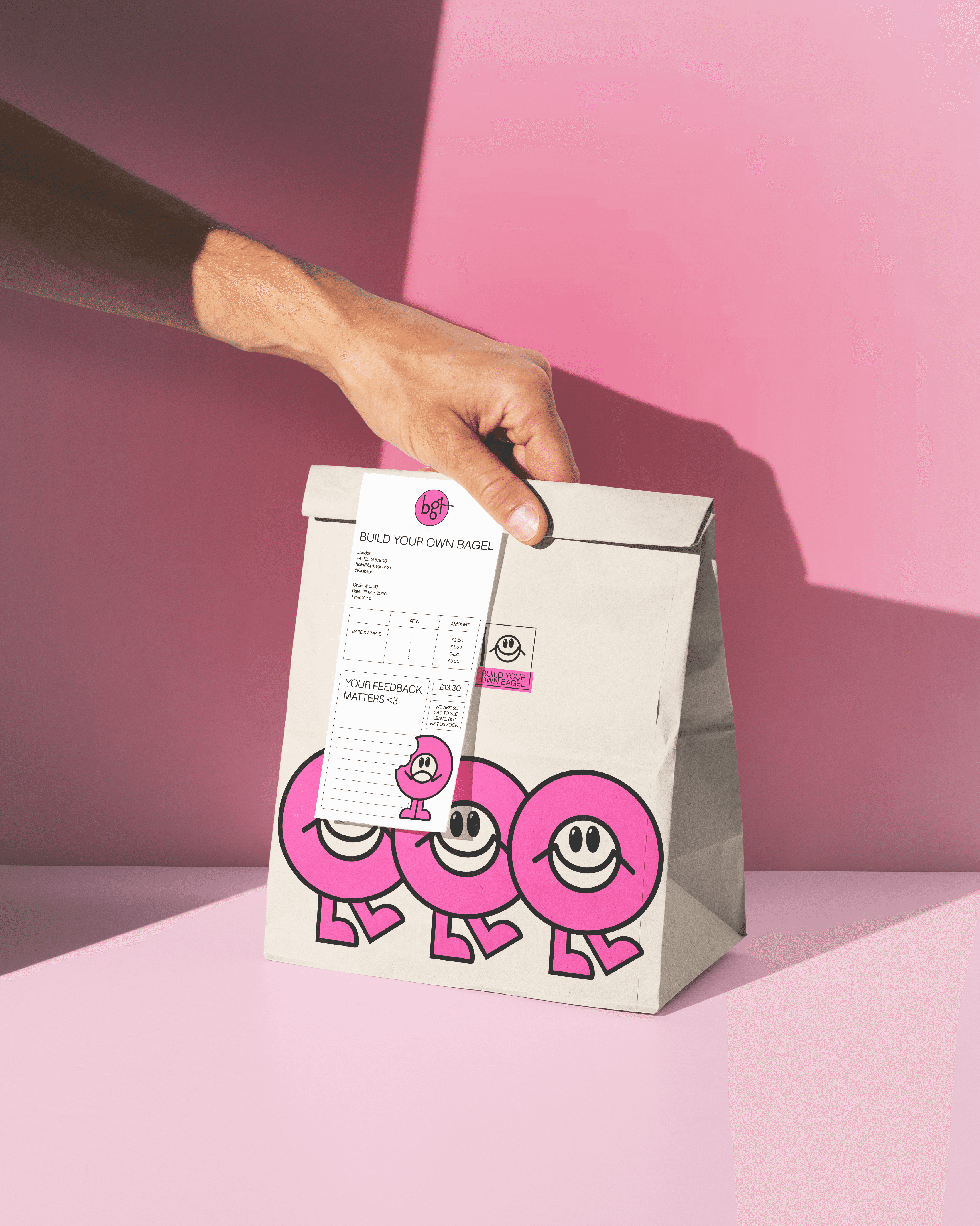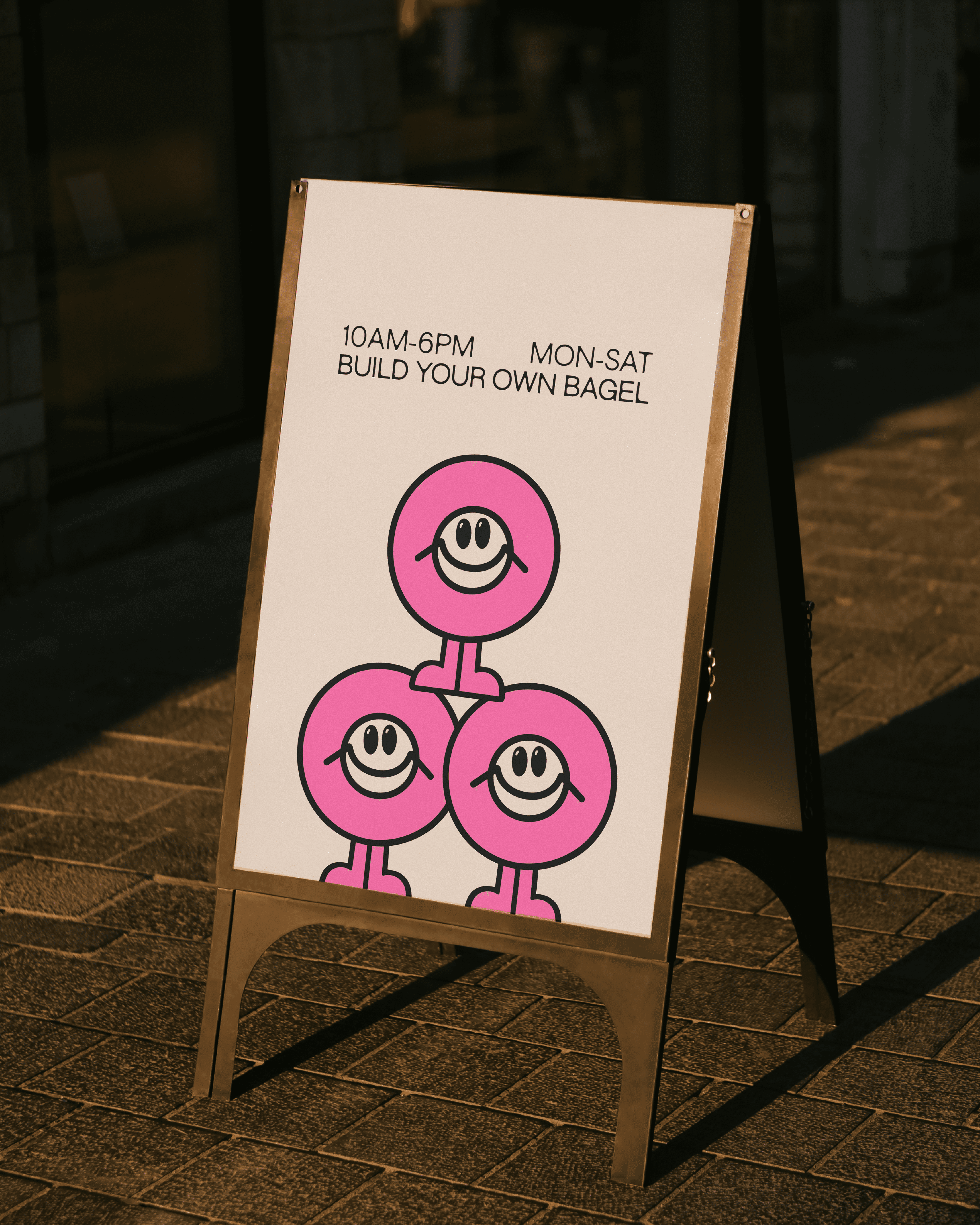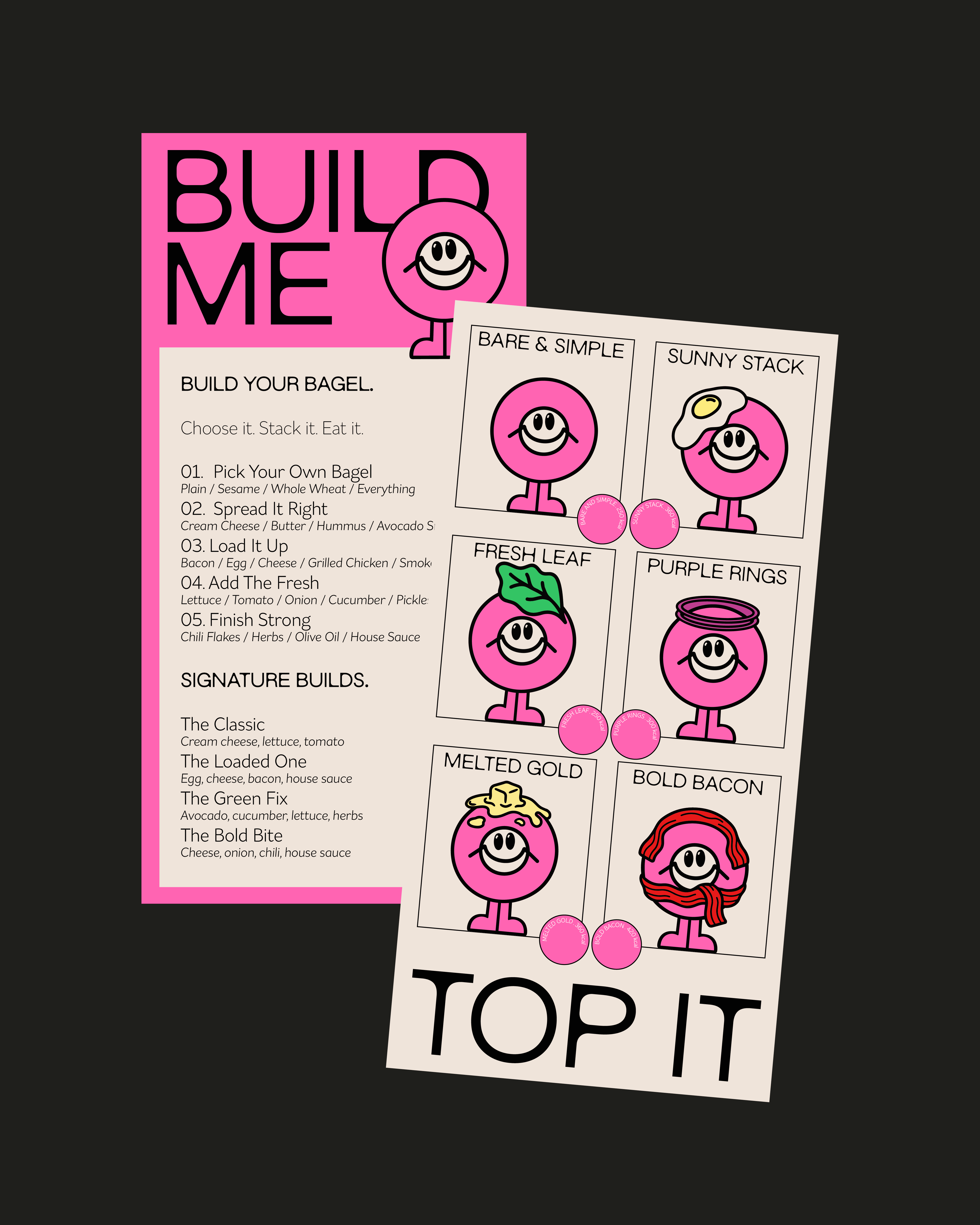 bagel itself becomes the mascot, simple, expressive, and adaptable across touchpoints. This allowed the brand to feel